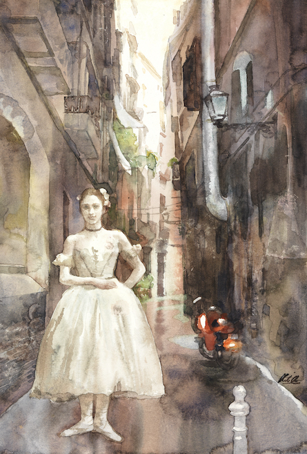 夏葆元《女性水成》系列创作于2001-2003年艺术家旅居纽约时。以水彩为媒介描绘了一众芭蕾舞者,共22幅。该作品集于2014年由天津人民美术出版社出版。